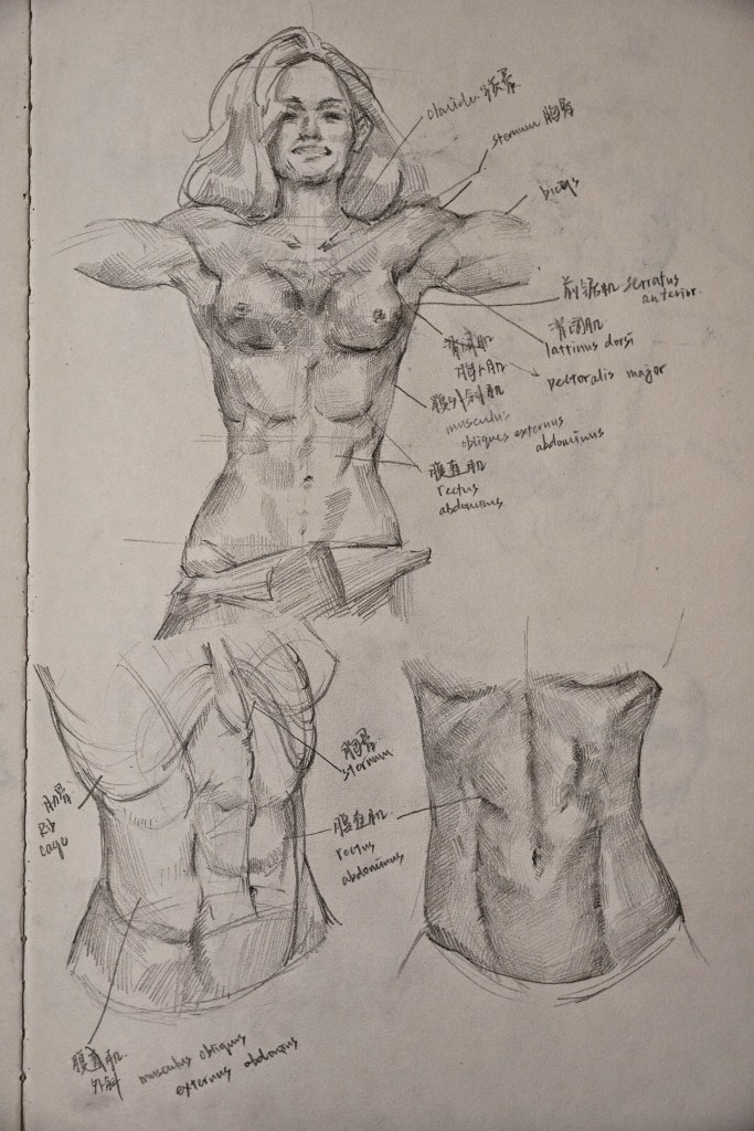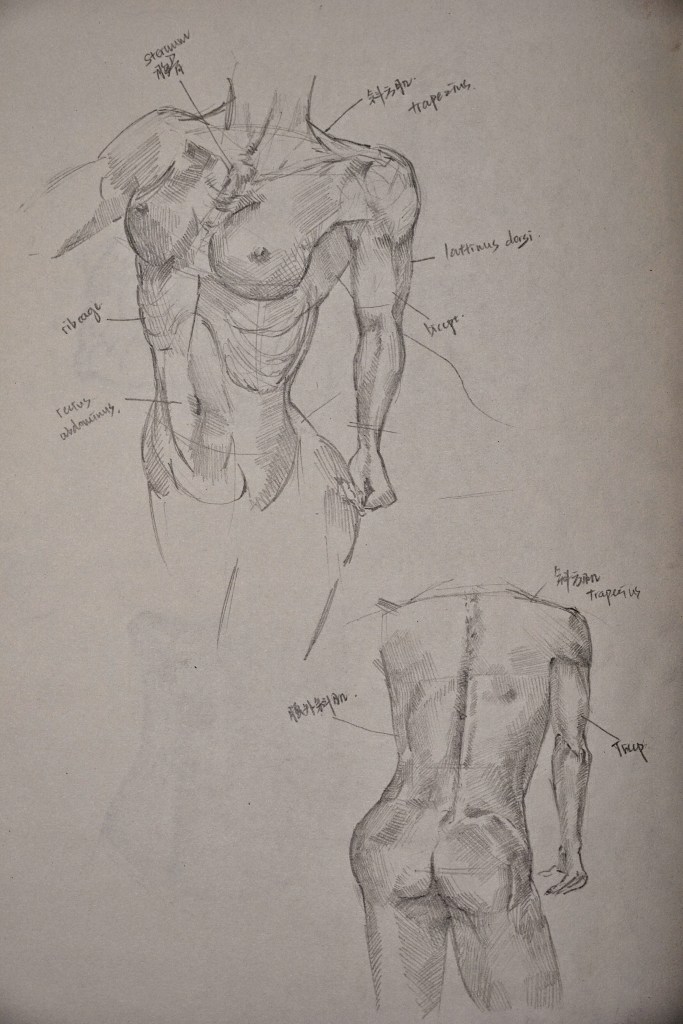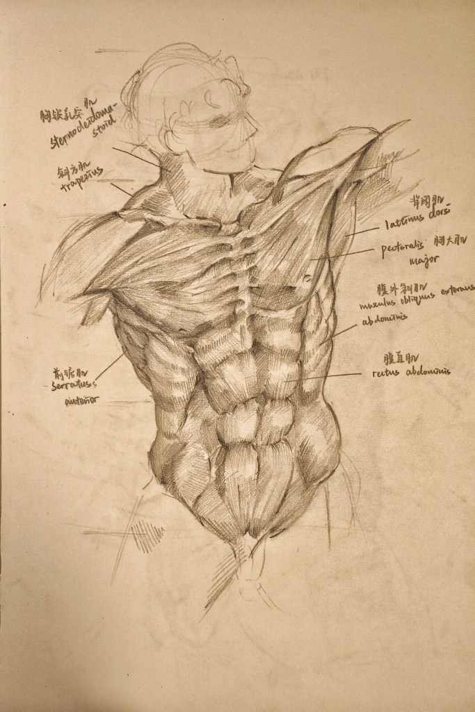 Anatomy sketches often depict men with fit, muscular bodies, while women images are less illustrated in such power and details.